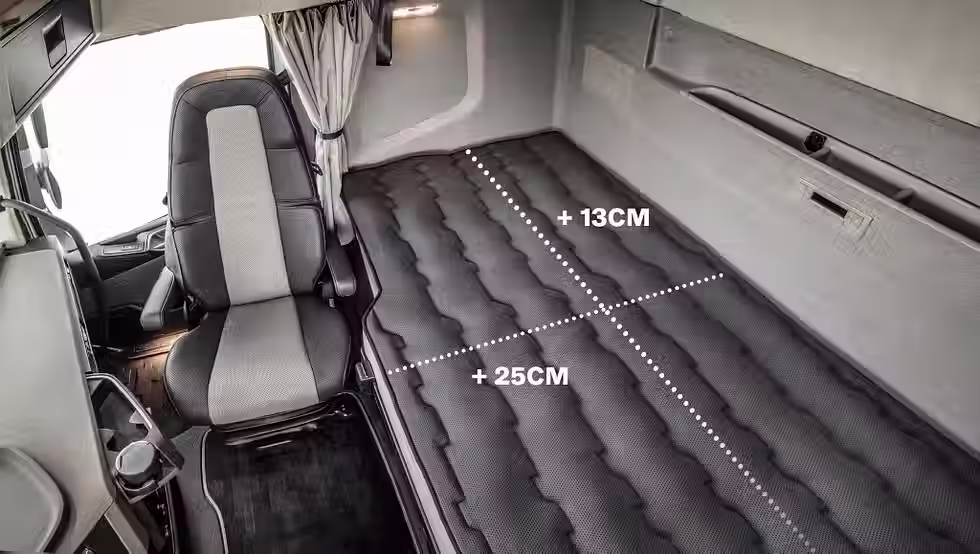 The lower bunk is both longer and wider, meaning drivers can actually stretch out properly for a change. Interior height has also been increased to around 220 cm, making it one of the roomiest cabs on the market.